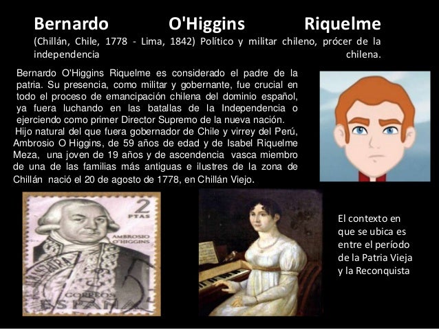 Bernardo o'higgins riquelme was a chilean independence leader who freed chile from spanish rule in the chilean war of independence. Check spelling or type a new query. We did not find results for: Maybe you would like to learn more about one of these?
